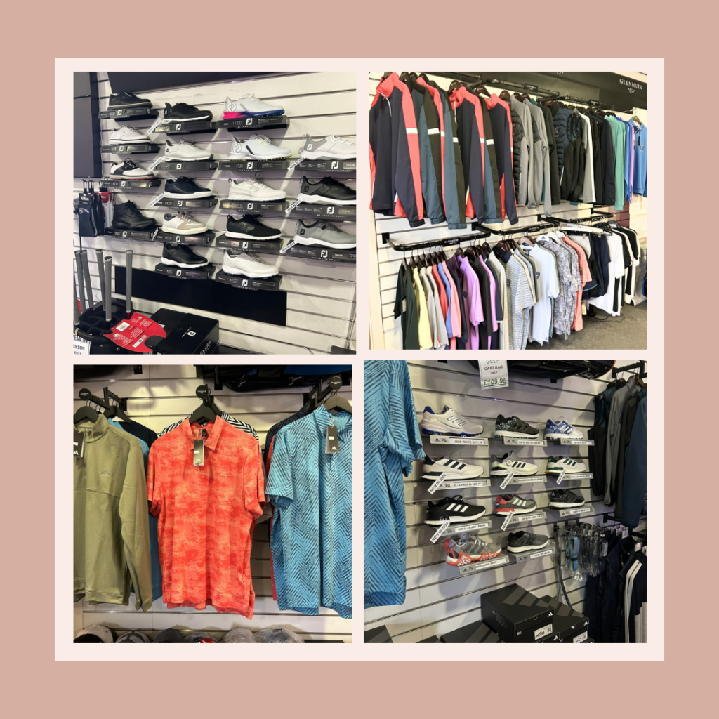 The golf shop is a one stop shop for all your golfing needs. As well as an extensive range of golf clothing, shoes and accessories, golf balls and clubs, we stock snacks and hot or cold drinks to take onto the course, branded souvenir and gift items.
